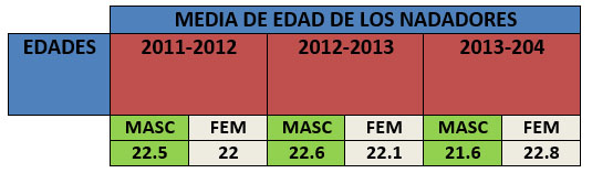 Si nos fijamos por ejemplo en las cifras del último ciclo, observamos como la edad de los chicos ganadores está en su mayoría en la horquilla comprendida entre los 21-23 años. Hasta diez nadadores aparecen en esos márgenes. Cinco tienen menos de veinte y lo otros tres sobrepasan los veinticinco. En cuanto a las chicas, las cantidades están un poco más repartidas. Seis, oscilan entre los 21-23. Cinco, son menores de veinte. Cuatro de ellas se sitúan entre los 23-25 y tres superan esas referencias.