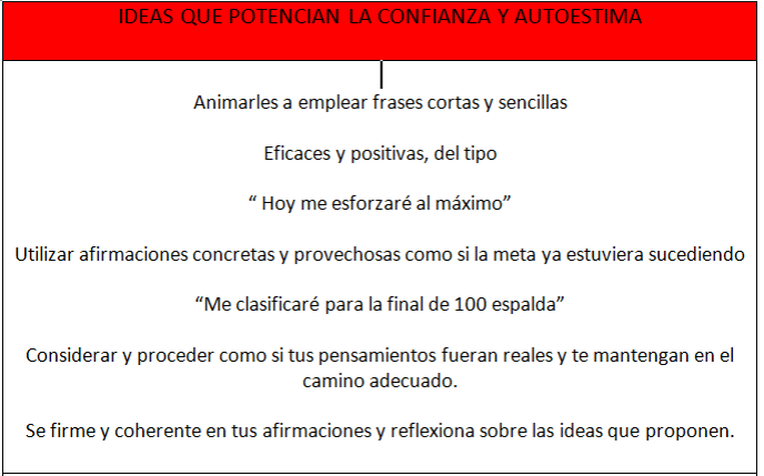 Como entrenadores y máximos responsables de la preparación y el bienestar de los nadadores a nuestro cargo tenemos la oportunidad de inculcarles pensamientos positivos que potencien sus objetivos, les ayudaremos a utilizar aseveraciones afirmativas de manera individual y colectiva que mejoren su confianza y autoestima.