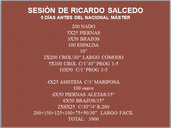 Con la disculpa del Campeonato de España Máster que comienza hoy en Málaga y que contará también con la participación de Saúl en un par de pruebas (Ricardo ha sido recientemente padre), me gustaría ofreceros alguna características de su preparación, algunos ejemplos de las sesiones que realizaban y detalles sobre la puesta a punto, con el deseo que resulte de vuestro agrado.