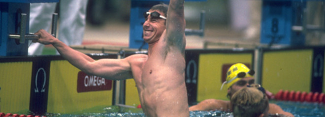 Ir a rebufo y chupar rueda del rival, fue la consigna. Nadar en la estela de Matt Biondi, reducir de esa manera el coste energético de la prueba, debido a la menor presión del agua al ir por detrás del americano y reservar de esa forma la energía necesaria para acelerar en los metros finales y tocar la placa en primer lugar. El técnico australiano trazó el plan y su nadador lo ejecutó a la perfección, logrando el título de campeón olímpico, el record mundial y una excelente marca de 1.47.25, ante la alegría incontrolable de su entrenador que lo celebró a lo grande en las gradas.