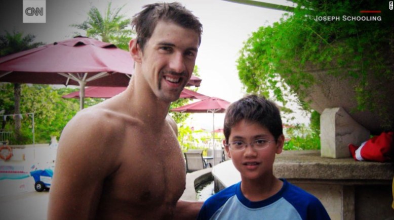 Julio de 2008, el equipo olímpico americano se concentra en Singapur como preparación para los Juegos olímpicos de Pekín. Un niño de 13 años de nombre Joseph Schooling aprovecha la ocasión y se fotografía junto a su ídolo, imagen que 8 años después sería portada de todos los medios de información del mundo. El pequeño jovencito se ha hecho mayor y ha destronado al Campeón en la final de 100 mariposa de Río 2016.