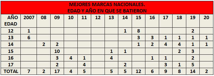 - Judit Ignacio con 11 MMN mantiene alguna de ellas en la tabla actual en 5 edades, desde los 13 años (13, 14, 15, 16 y 17 años