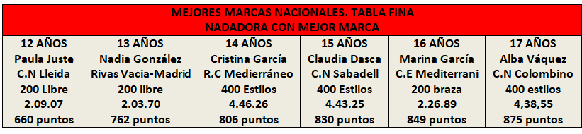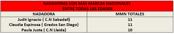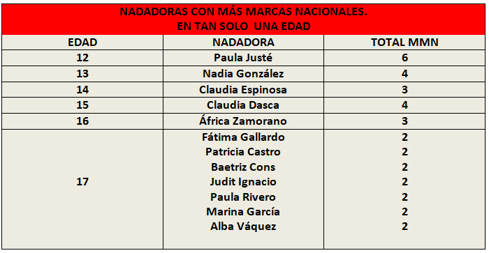 - Paula Justé con 6 es la nadadora que más MMN posee en tan solo una edad, los 12 años.