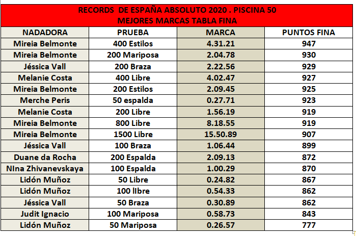 ANÁLISIS. RECORDS DE ESPAÑA ABSOLUTOS
