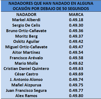 7 nadadores han bajado en lo que va de temporada de los 50 segundos.