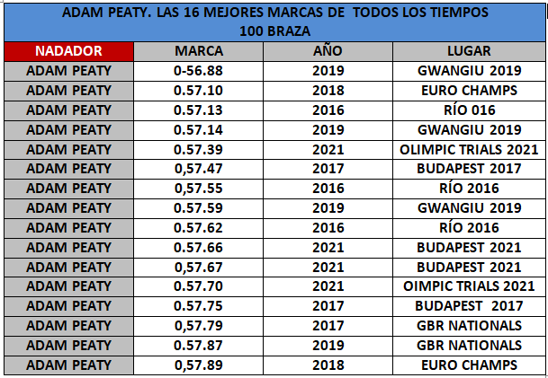 Cómo imaginarse que un nadador británico, llamado Adam Peaty, 19 años más tarde de su hazaña en Australia nadara la distancia es unos estratosféricos 0.56.88 y actualmente tendría en su poder las 16 mejores marcas mundiales de todos los tiempos.