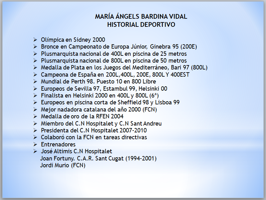 Un día como hoy de 1980 nació en Hospitalet de Llobregat María Ángels Bardina Vidal, nadadora catalana, olímpica en Sidney 2000 y que obtuvo durante su trayectoria numerosos éxitos, que engrandecieron su historial deportivo y el de nuestra natación.