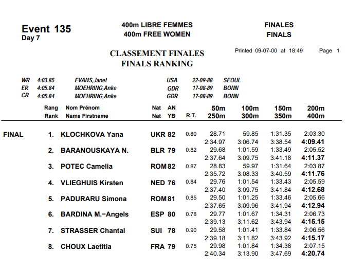 EUROPEO DE HELSINKI 2000. FINALISTA (6º)