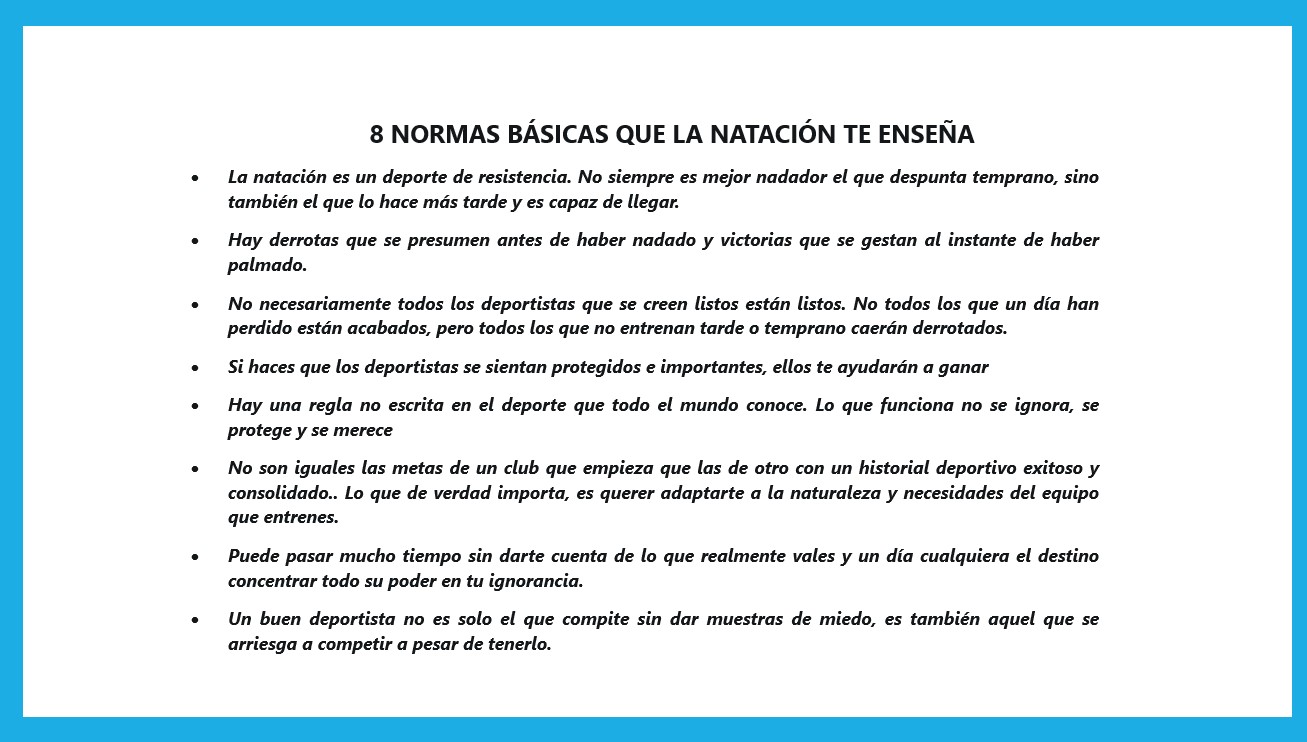 No lo puedo evitar, es una afirmación que los clubes, técnicos y nadadores de nuestro país escuchamos con demasiada frecuencia, que por supuesto no comparto. Yo no creo que seamos vagos y estemos acomodados, aunque como en cualquier profesión existan casos.
